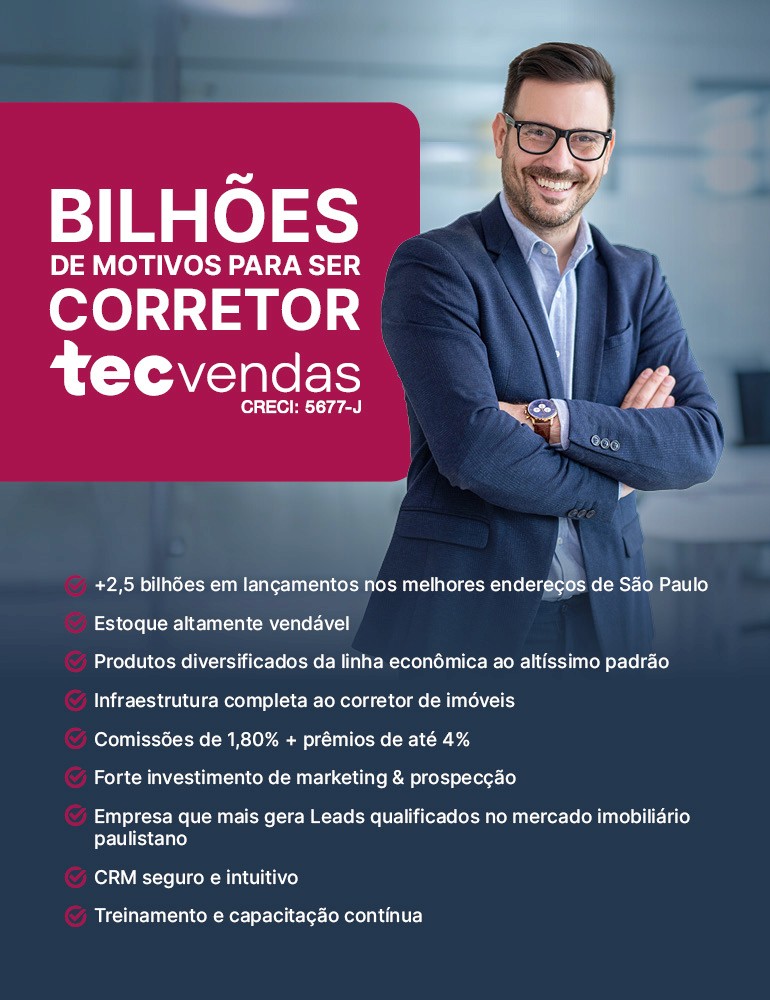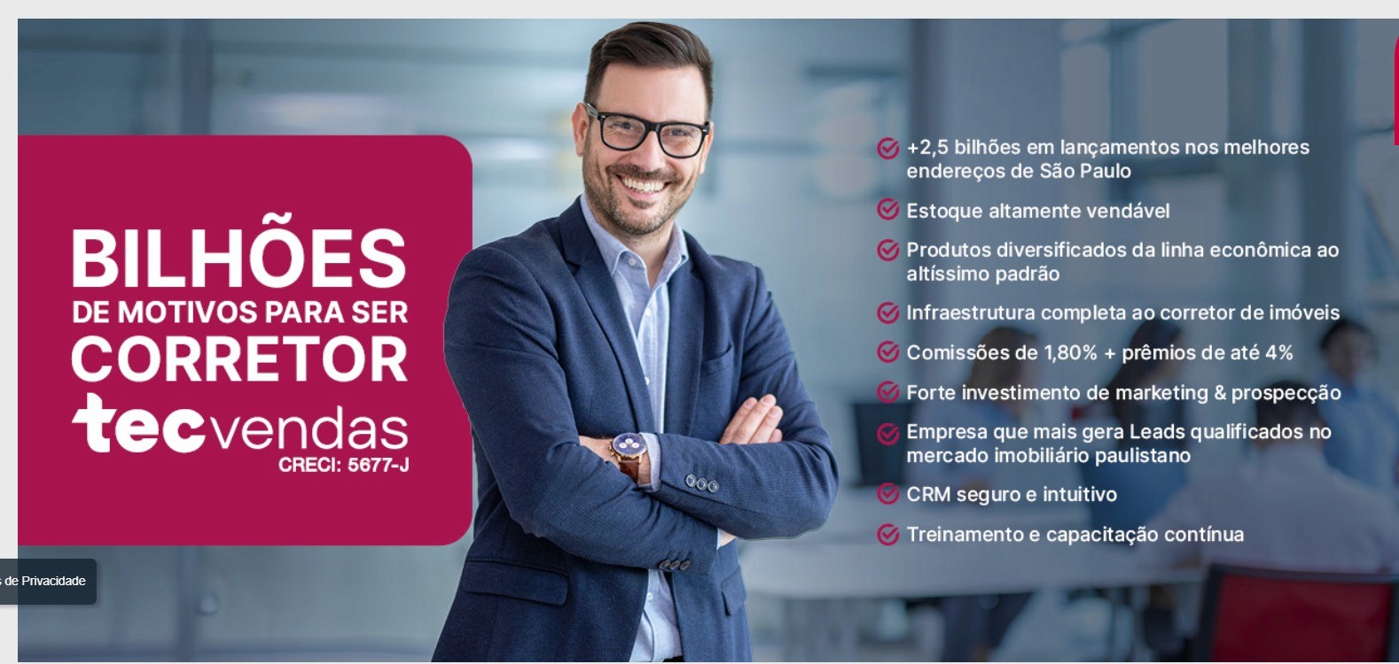Tenha acesso exclusivos aos principais lançamentos EZTEC! Treinamento, acompanhamento e toda a estrutura de uma das maiores incorporadoras de São Paulo